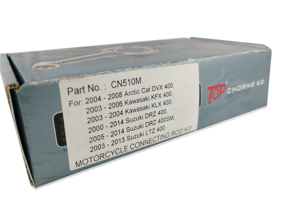 The TOP® connecting rod kit is engineered for Suzuki models DRZ400, DRZ400SM, and LTZ400, ensuring long-lasting durability and superior performance. This kit is suitable for motorcycles from 2000 to 2014, providing an ideal replacement part.
